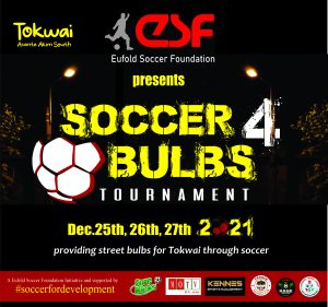 We are using our yearly tournament to help replace street bulbs in Tokwai, a village in the Asante Akim South district.